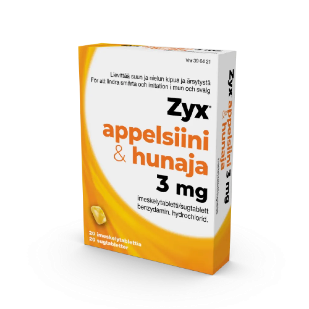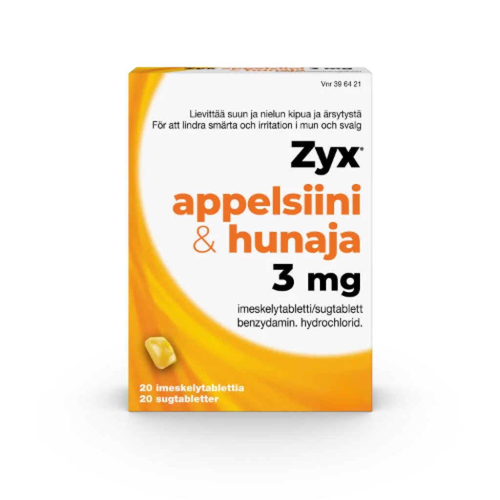 Zyx Appelsiini & hunaja 3 mg 20 imeskelytablettia